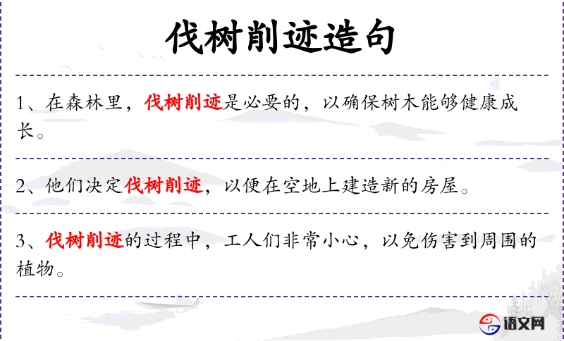 句子:“在森林里,伐树削迹是必要的,以确保树木能够健康成长。”