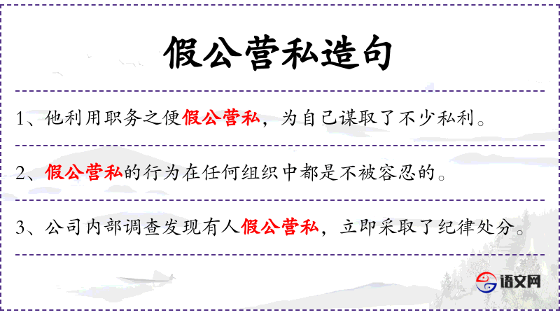 - “假公营私”是一个常见的成语,用于描述不正当的行为。