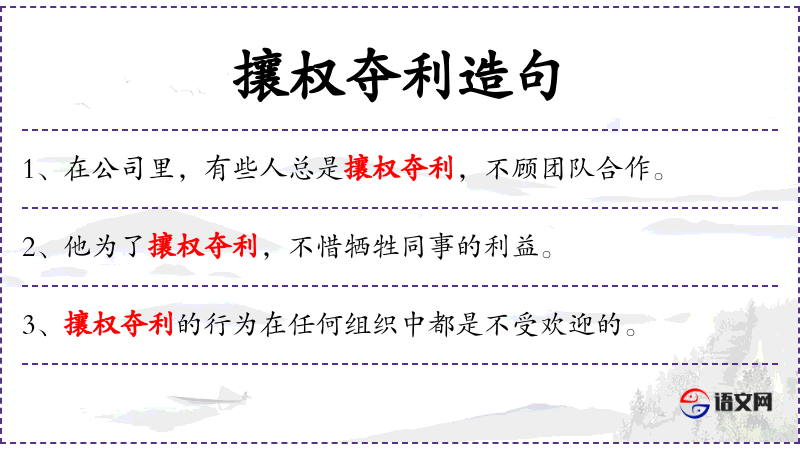 - 攘权夺利:成语,意思是争夺权力和利益。