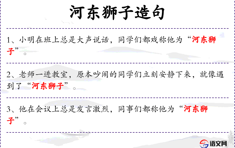 2. 【河东狮子】 - 旧指妒悍的妇女。