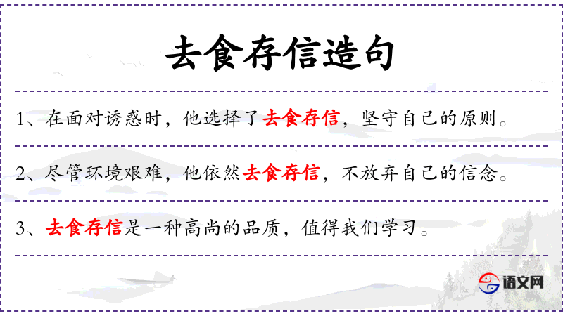 - 去食存信:这个短语可能源自**传统文化,强调在面对物质诱惑时保持诚信和原则的重要性。