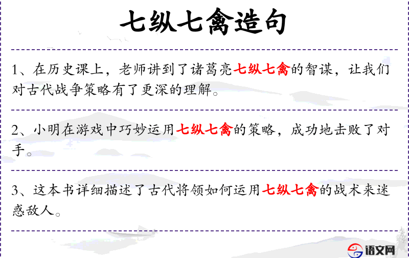 - 七纵七禽:这个成语源自**古代兵法,体现了中华文化中的智慧和策略。