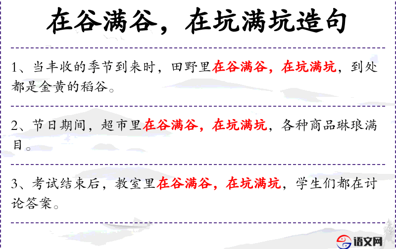 - 成语:“在谷满谷,在坑满坑”是一个比喻,源自古代对丰收的描述,这里用来形容人多拥挤。