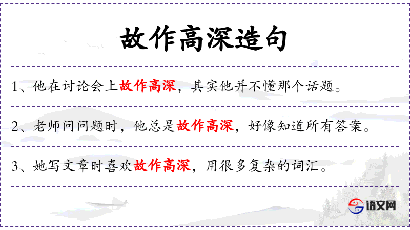 - 故作高深:成语,表示故意显得深奥难懂。