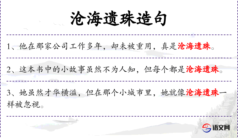 2. 【沧海遗珠】 - 大海里的珍珠被采珠人所遗漏。比喻埋没人才或被埋没的人才。