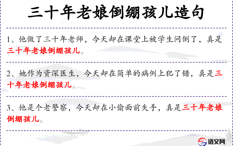 1. 【三十年老娘倒绷孩儿】 比喻对素所熟习之事一时失手,犯了不该有的错误。