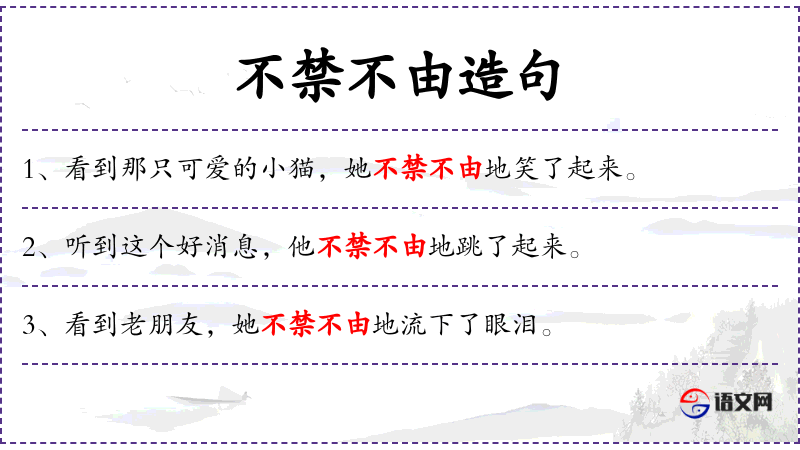 - 状语:听到老师的表扬,不禁不由地