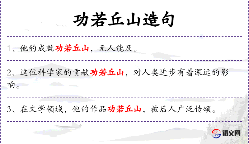 “功若丘山”是一个比喻,源自文化中对巨大成就的赞美。这种表达方式在文化中常见,用以强调某人的贡献或成就非常显著。