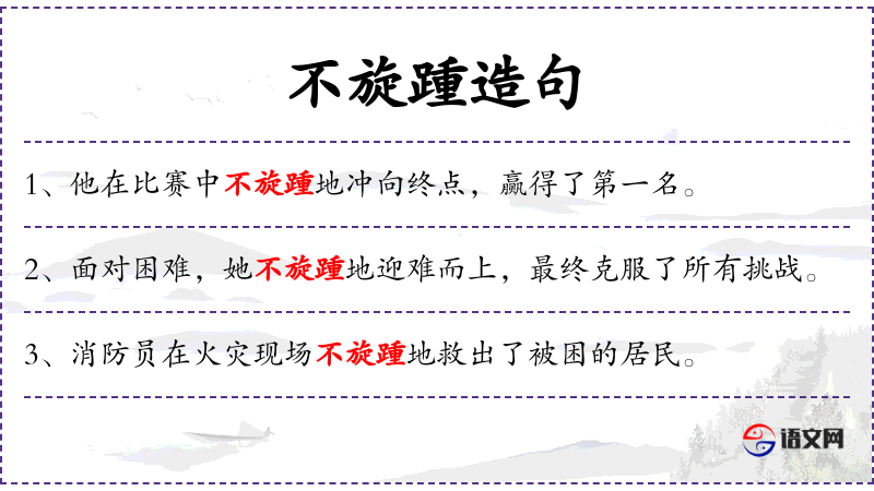 - 状语:在紧急情况下,不旋踵地