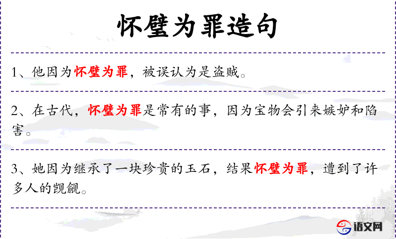 - 怀璧为罪:这个成语源自**古代,意味着拥有珍贵物品可能会招致祸患。