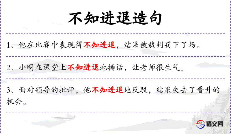 - 不知进退地:不恰当地、不适宜地