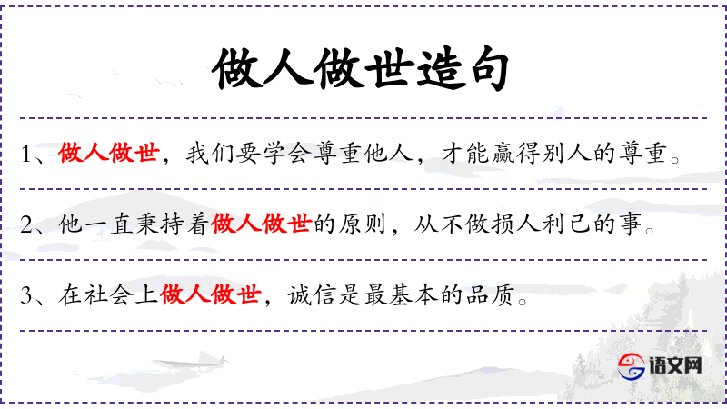 - 宾语:做人做世的道理