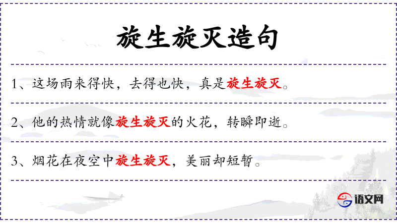 - 旋生旋灭:这个成语反映了**人对事物变化迅速的观察和描述,强调事物的短暂性和不稳定性。