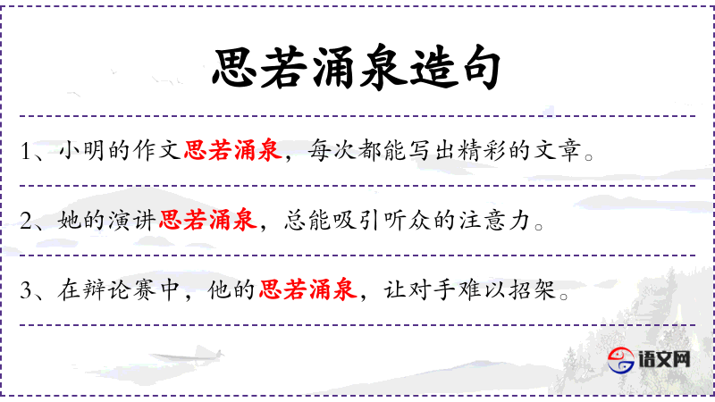 - 谓语:思若涌泉
