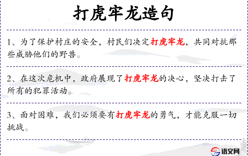 - 打虎牢龙:成语,比喻克服重重困难,此处比喻采取强有力的措施。