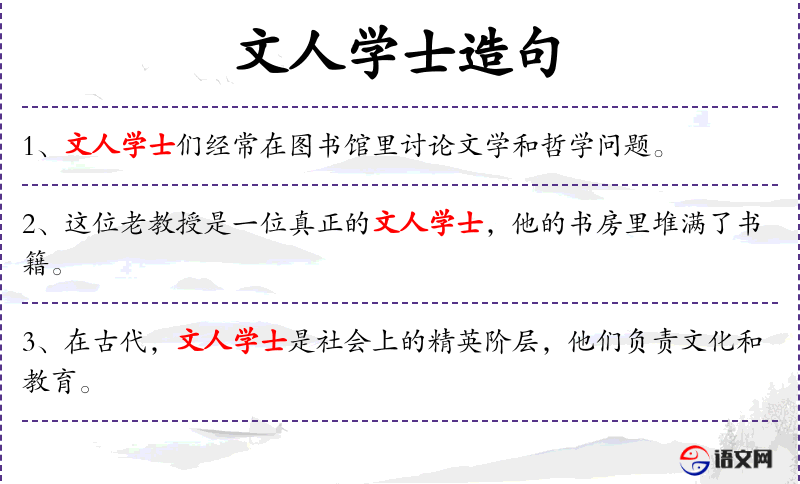 - 文人学士:指有深厚文学和学术修养的人。