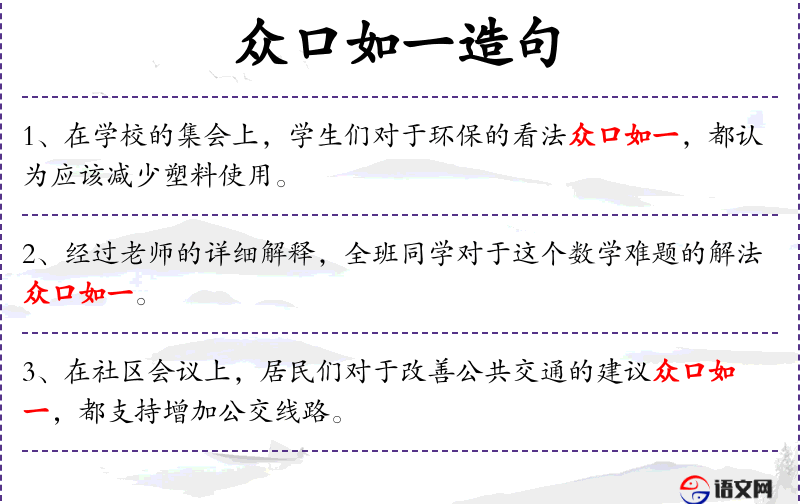 - 使用“众口如一”这样的表达方式,增加了语气的正式性和强调效果。