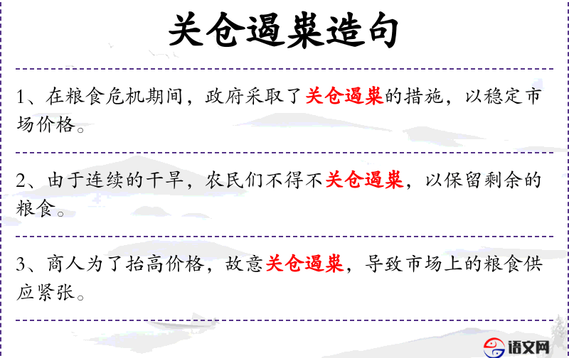 - 关仓遏粜:关闭粮仓,停止出售粮食,以防止粮食短缺。