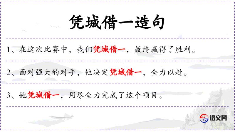 - 凭城借一:这个成语源自**古代的军事策略,意指在困境中依靠有限的资源或帮助。在现代语境中,它被用来比喻在困难时期依靠有限的帮助或资源。