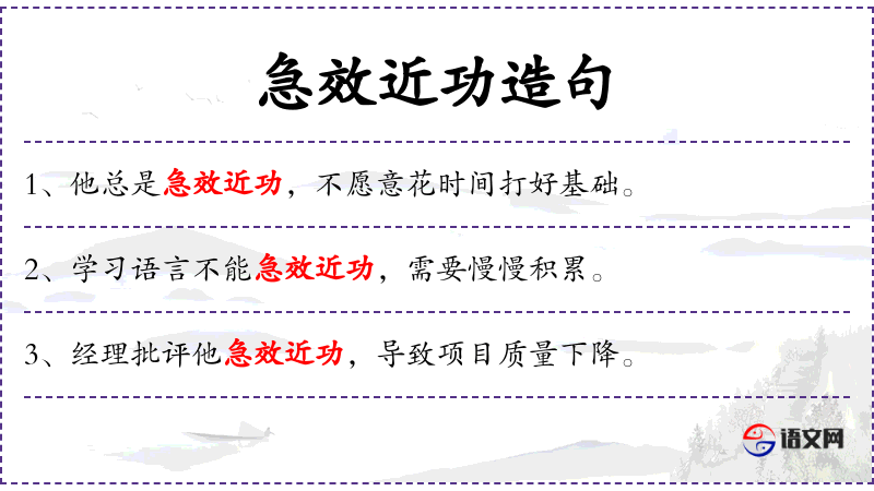 - 谓语:总是急效近功,不愿意花时间打好基础