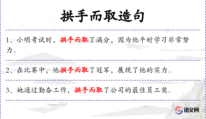 句子:“小明考试时,拱手而取了满分,因为他平时学*非常努力。”