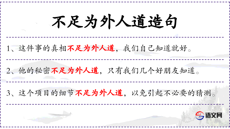 - 不足为外人道:意指不值得或不适合向外界透露。