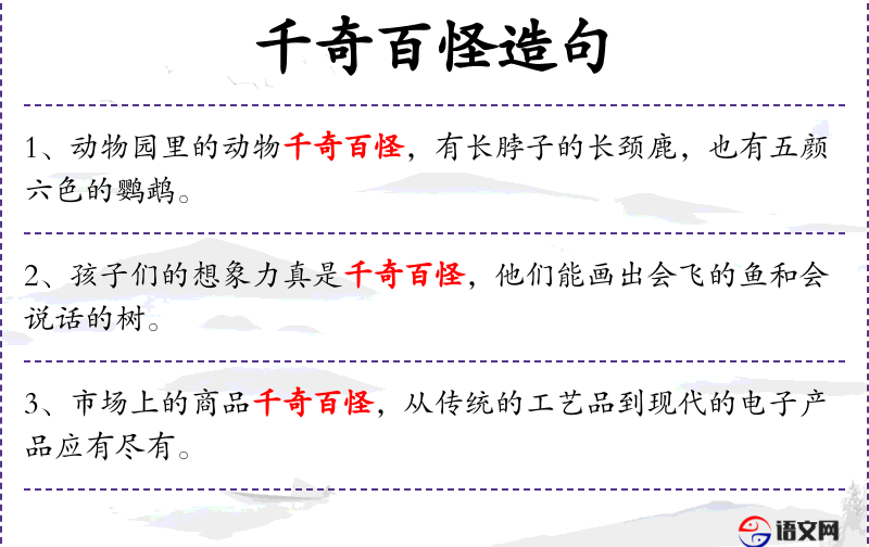 - 千奇百怪:形容事物多种多样,非常奇特。