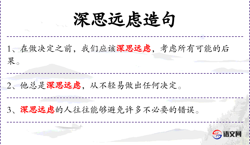 3. 【深思远虑】 - 谋划周密,考虑长远。指计划周到,具有远见。