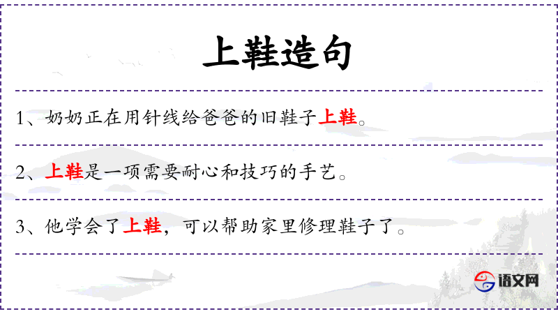 1. 【上鞋】 将鞋帮﹑鞋底缝在一起。