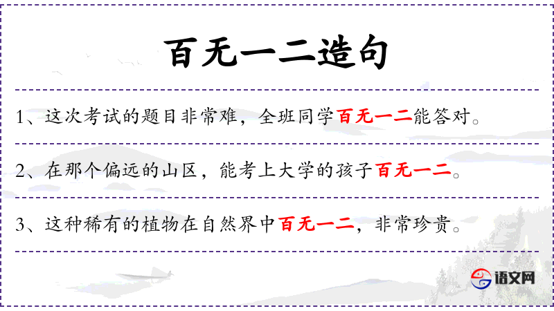 3. 【百无一二】 一百个中找不出一两个。指某一类人或事物所占比例极少。