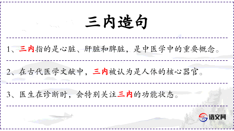 1. 【三内】 - 皇帝的居处称大内。唐代大内以太极宫为西内﹑大明宫为东内﹑兴庆宫为南内,合称三内。