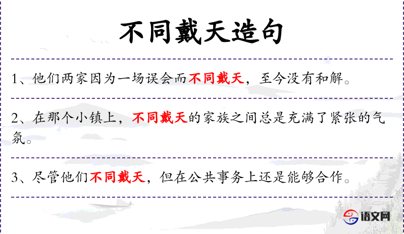 戴:加在头上或用头顶着。不愿和仇敌在一个天底下并存。形容仇恨极深。