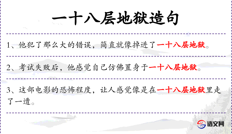 - 十八层地狱:在传统文化中,十八层地狱是概念,用来形容极度的苦难和惩罚。