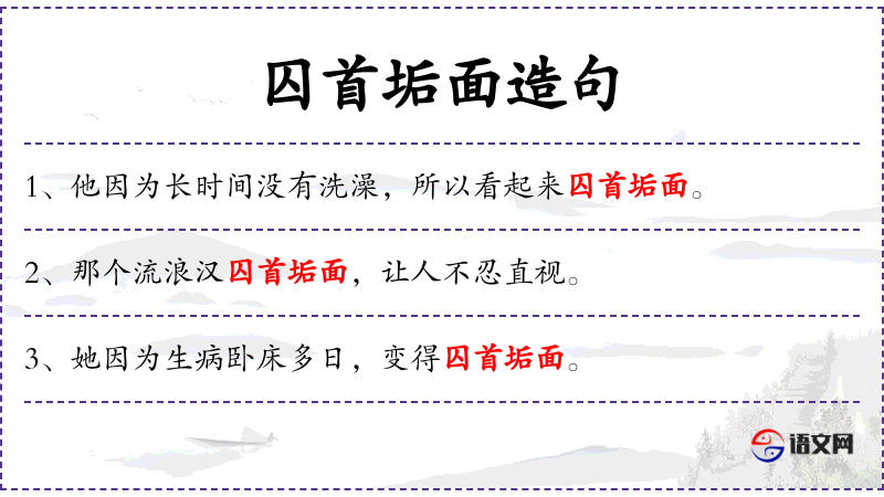 - 宾语:囚首垢面