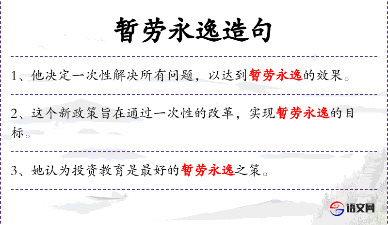 4. 【暂劳永逸】 - 犹一劳永逸。指以一时的辛劳,换取长久的安逸。