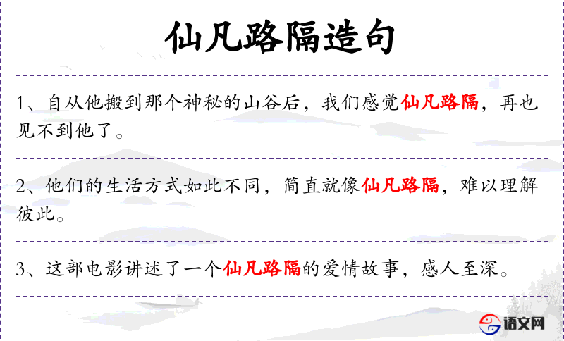 - 仙凡路隔:这个成语源自**传统文化,比喻两者之间的距离非常遥远,难以逾越。