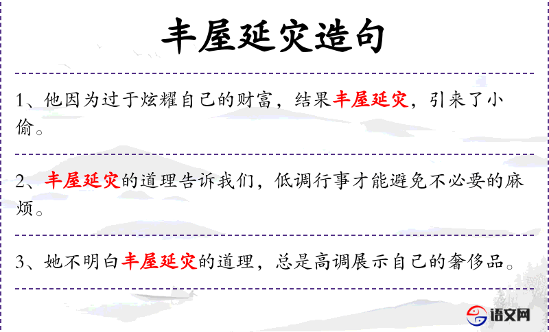 “丰屋延灾”是一个成语,反映了传统文化中对节俭和谦逊的重视。这个成语提醒人们,过度奢华可能会招致不必要的麻烦或灾祸。
