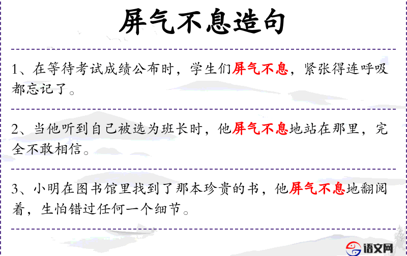 - 屏气不息:形容非常紧张,不敢呼吸。