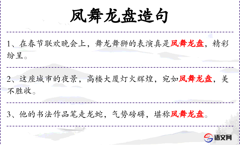 - 凤舞龙盘:比喻动作优美且有力,源自**传统文化中的凤凰和龙的形象。