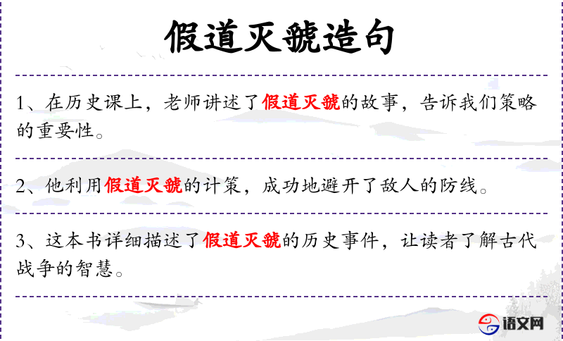 - 假道灭虢:这是一个成语,源自**古代历史,指的是晋国通过借道虞国来消灭虢国的策略。