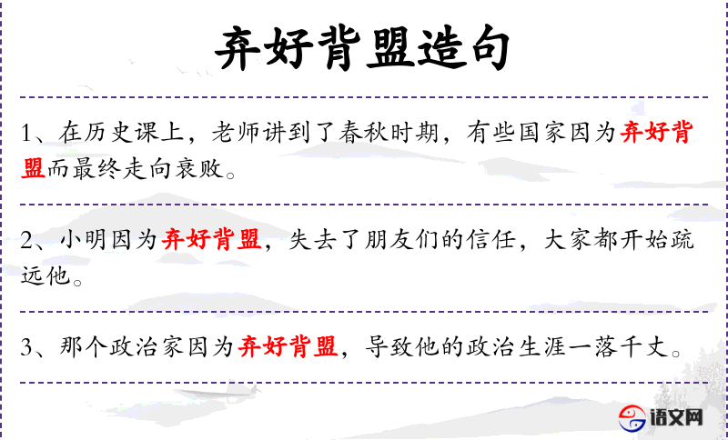 - 弃好背盟:成语,意思是违背了之前的友好约定或承诺。