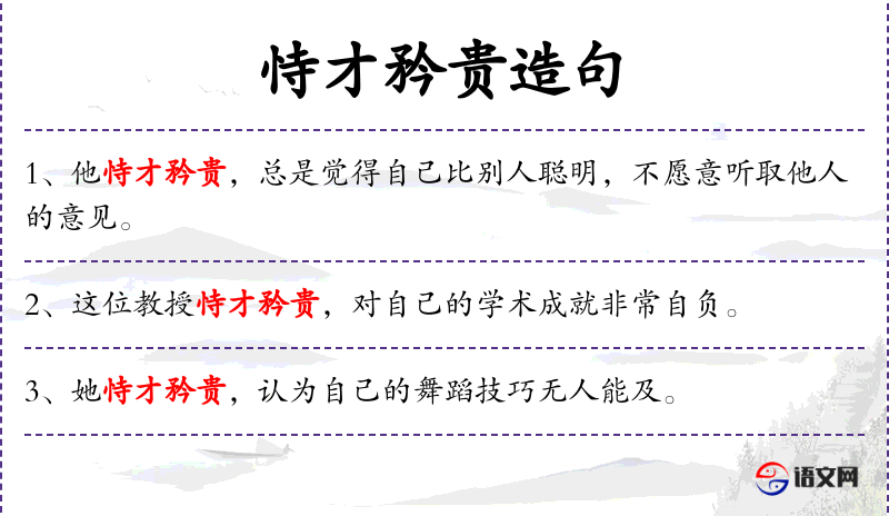 - 谓语:恃才矜贵,非常自信