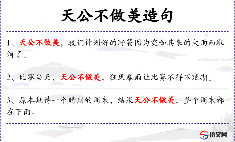 “天公不做美”是一种常见的表达方式,反映了**人对自然现象的敬畏和对农业生产的重视。这种表达方式体现了农业社会中人与自然的关系。
