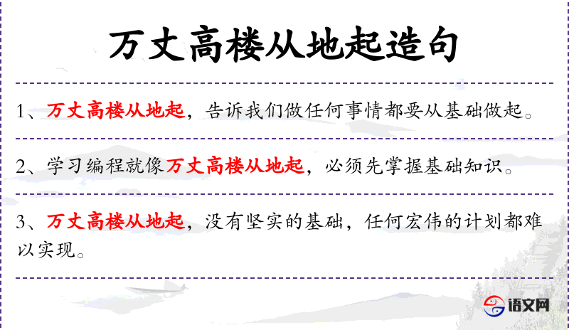 句子:“万丈高楼从地起,没有坚实的基础,任何宏伟的计划都难以实现。”