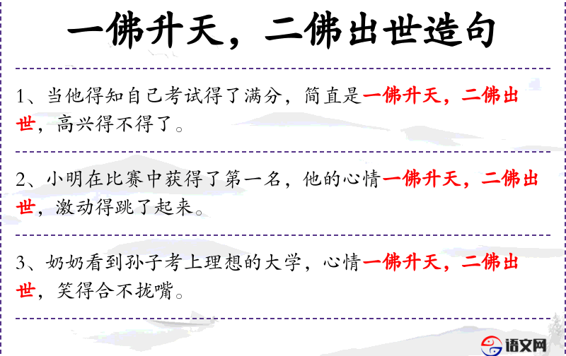 - “一佛升天,二佛出世”是一个**成语,用来形容极度高兴或激动。