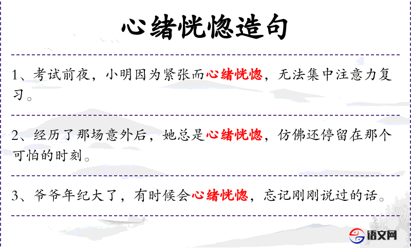 - 心绪恍惚:形容心情不稳定,思维不清晰。