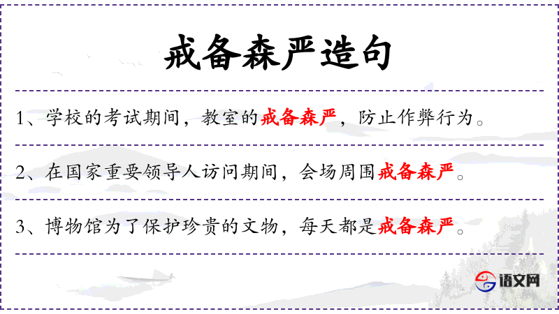 - 宾语:戒备森严
