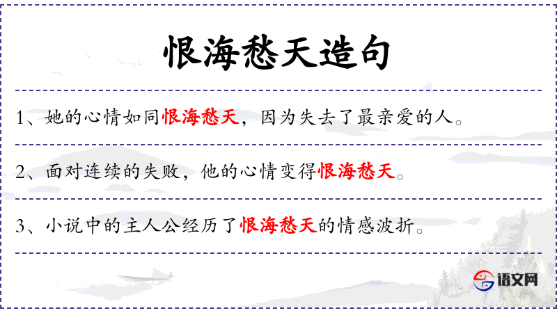- 宾语:恨海愁天的情感波折