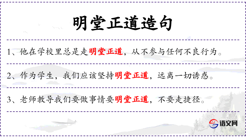 - 宾语:明堂正道、一切诱惑