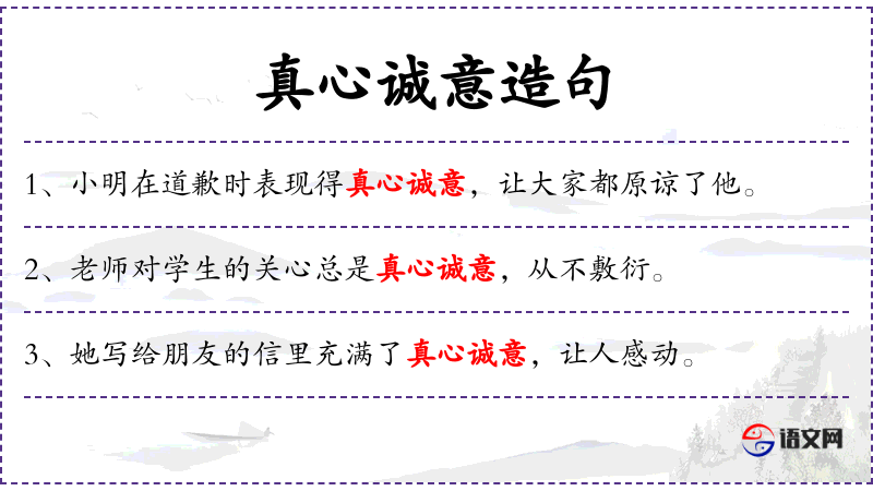 1. 【真心诚意】 - 心意真实诚恳,没有虚假。